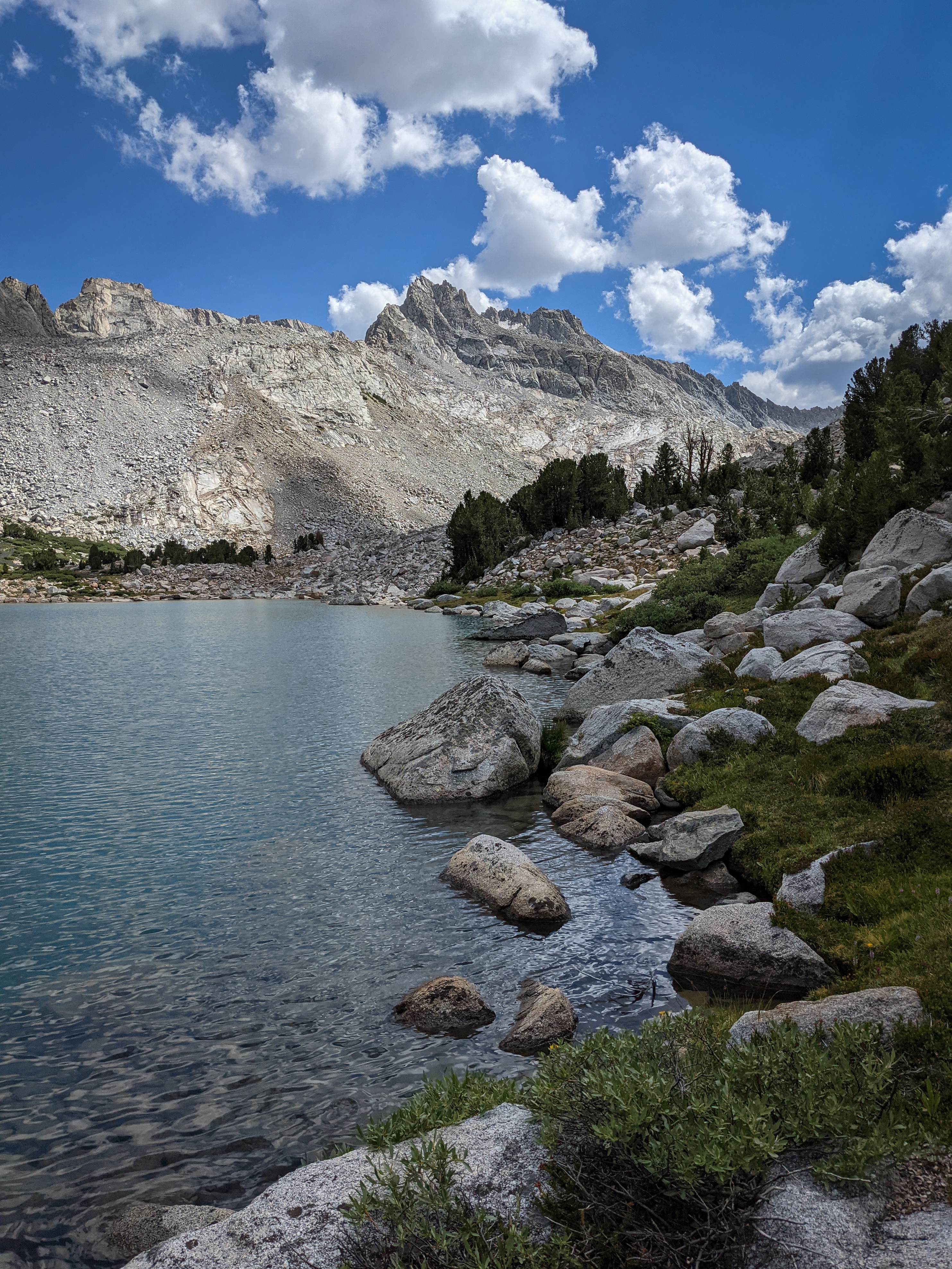 The east face of Mount Darwin high above. I hiked down the trail, passing a few groups of fishermen out and about. But it was mostly not too busy out.