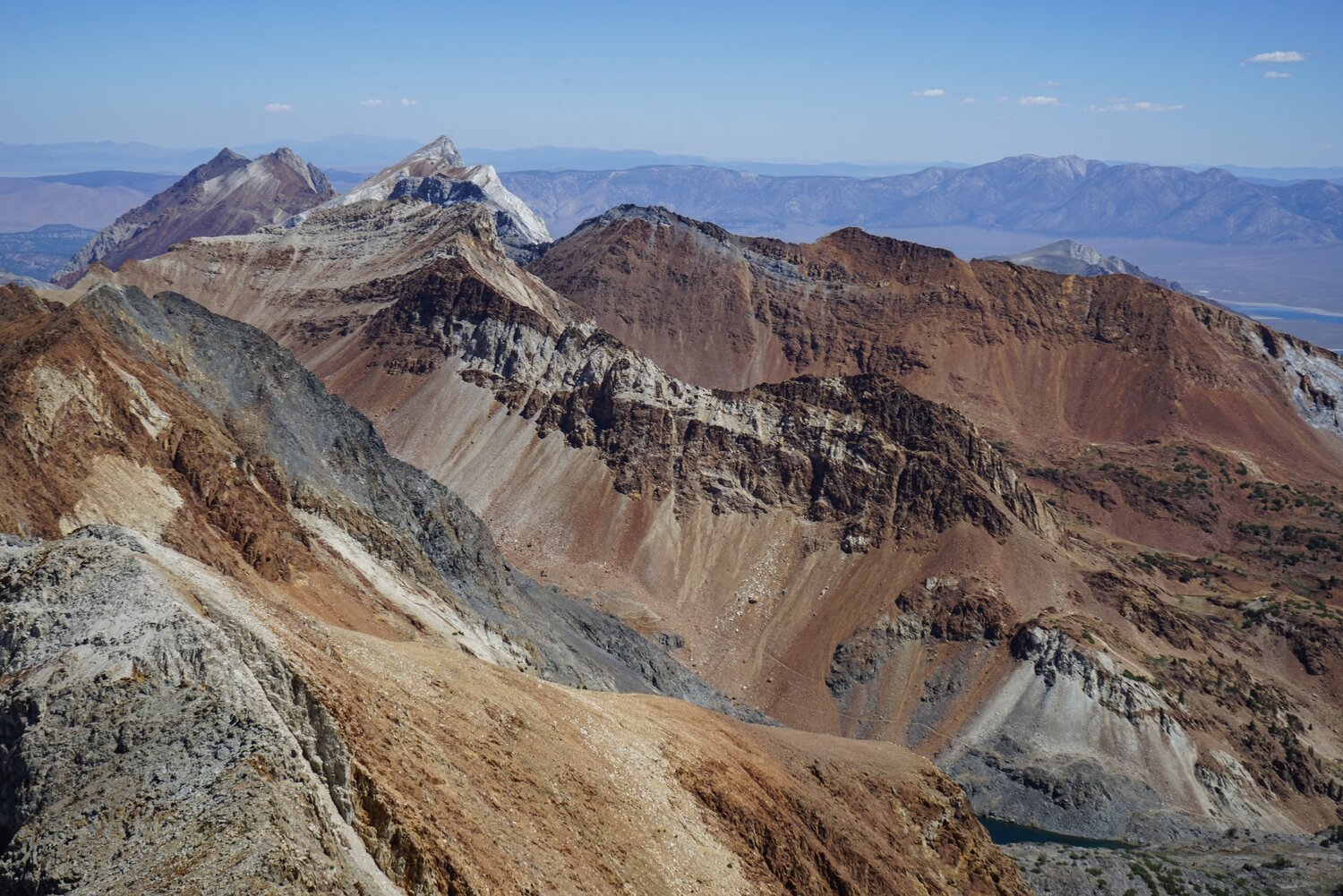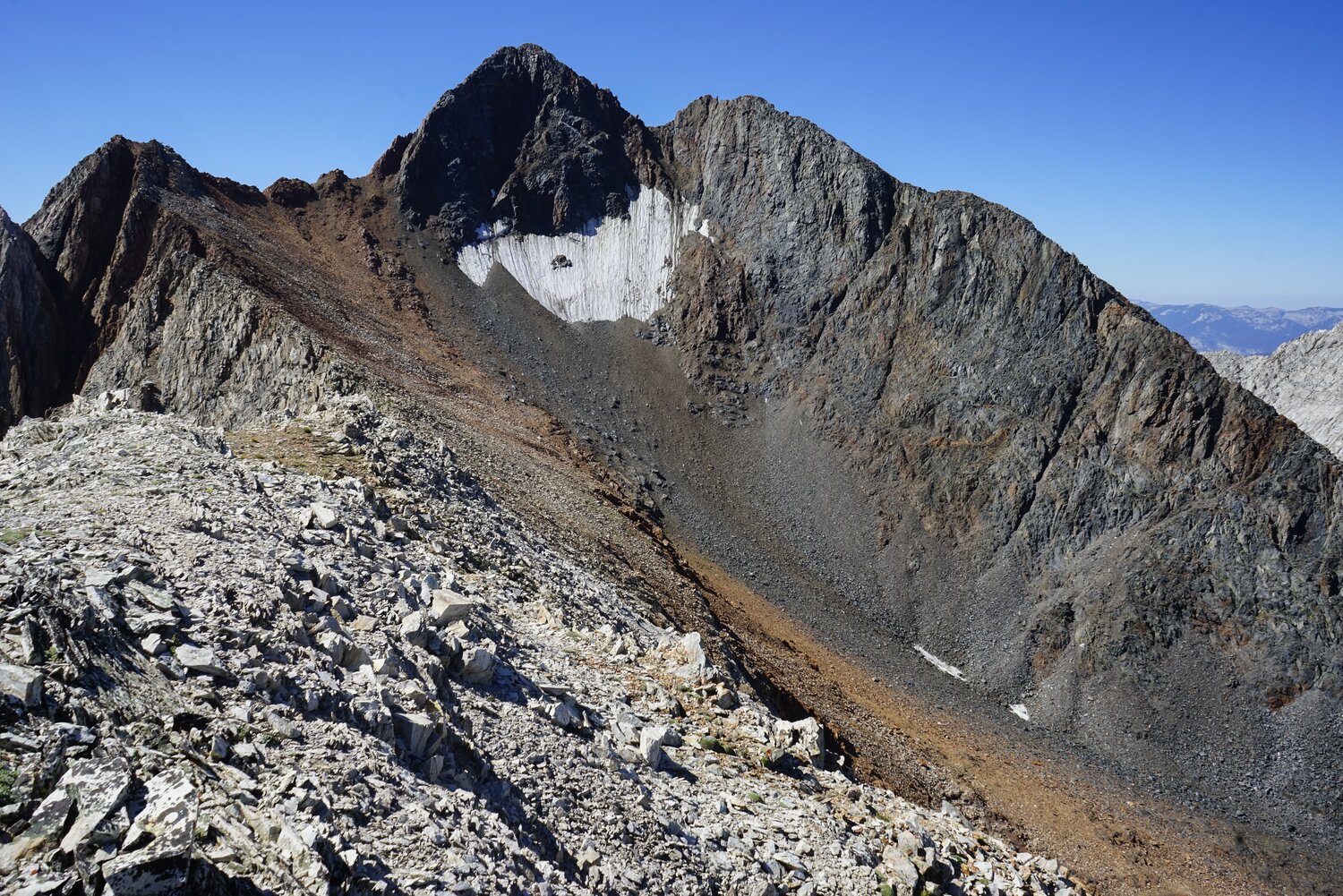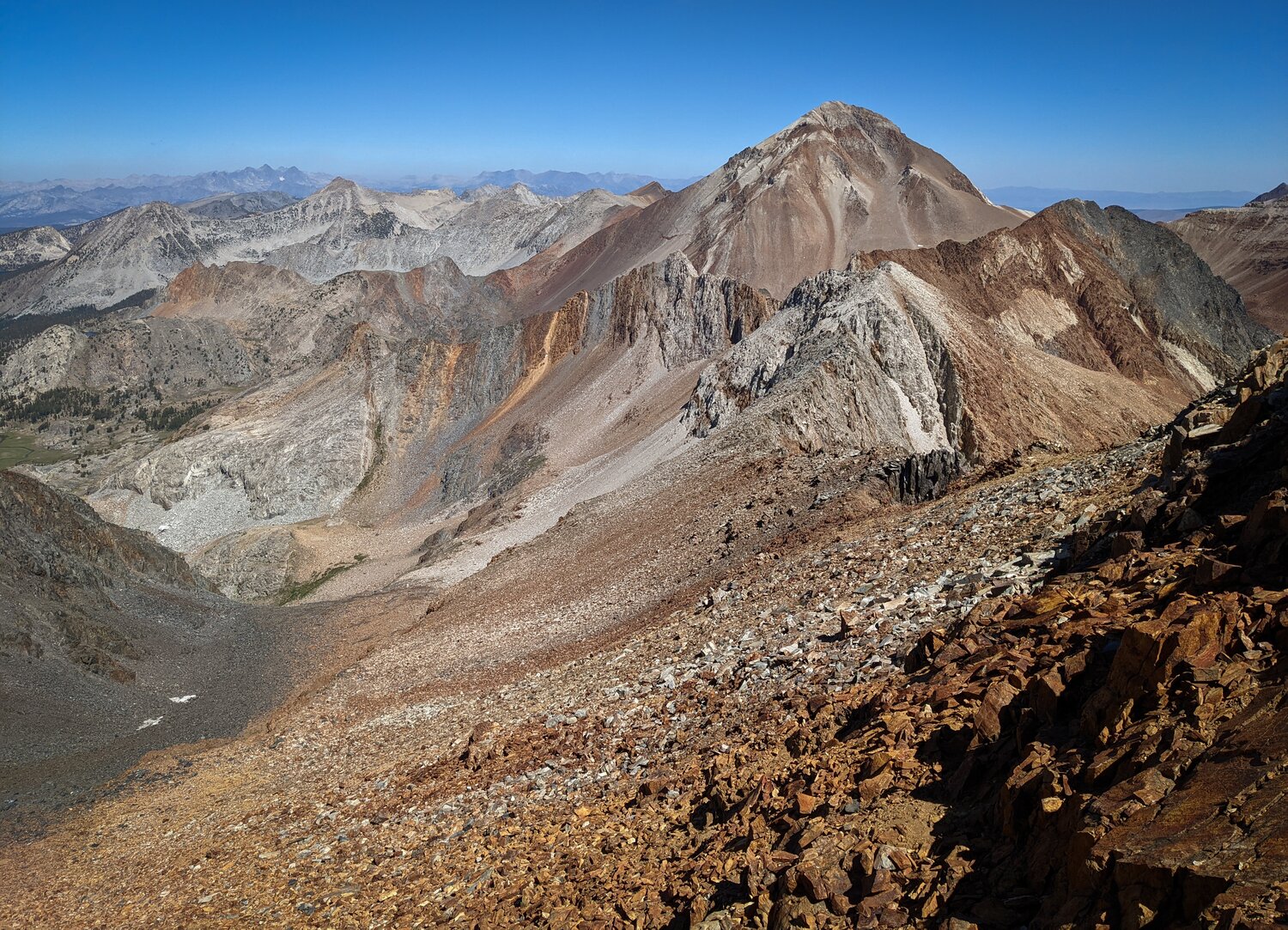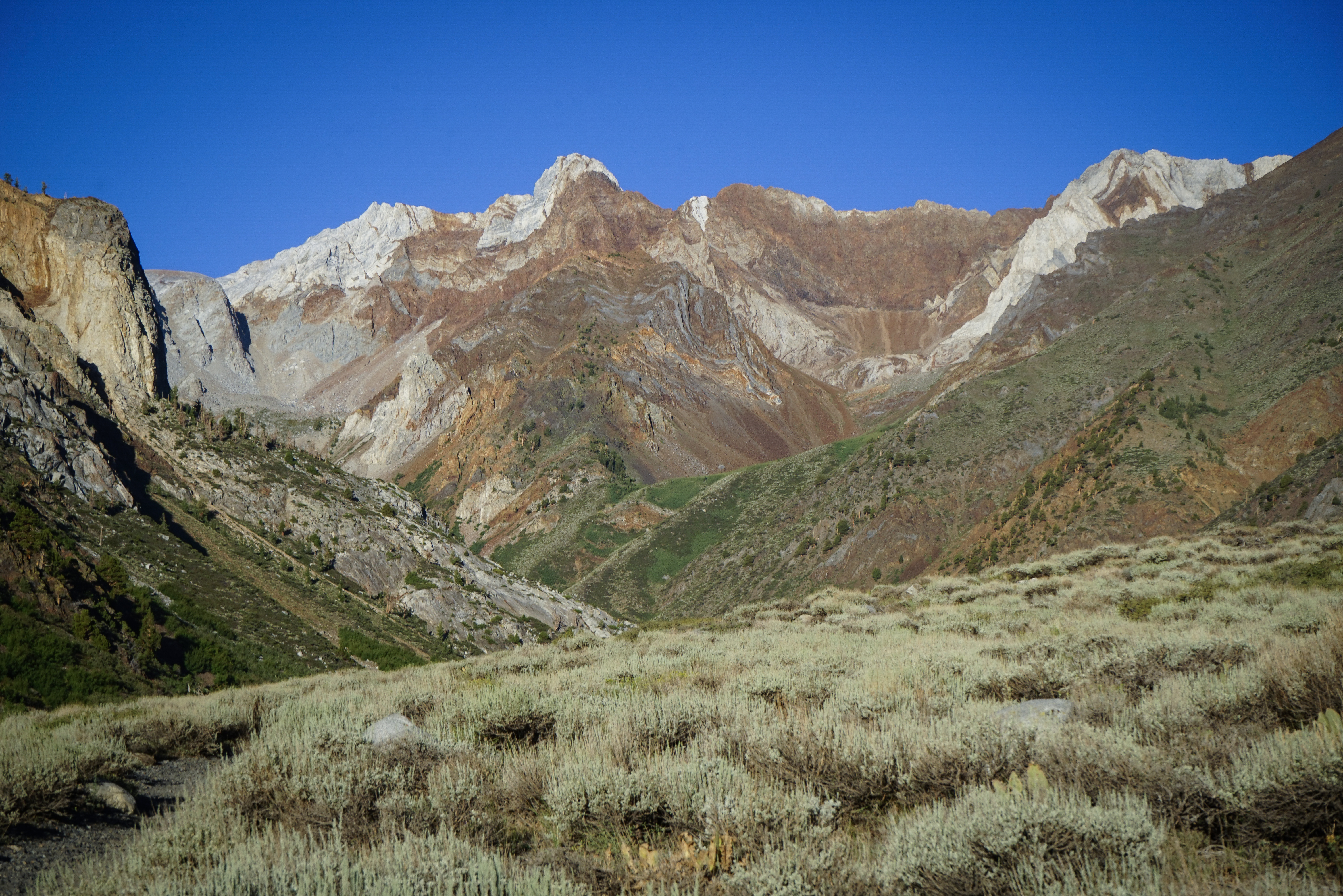 Looking north towards Red Slate Mountain, with Bloody Mountain behind and to the left and Mount Baldwin and Mount Morrison behind and to the right.