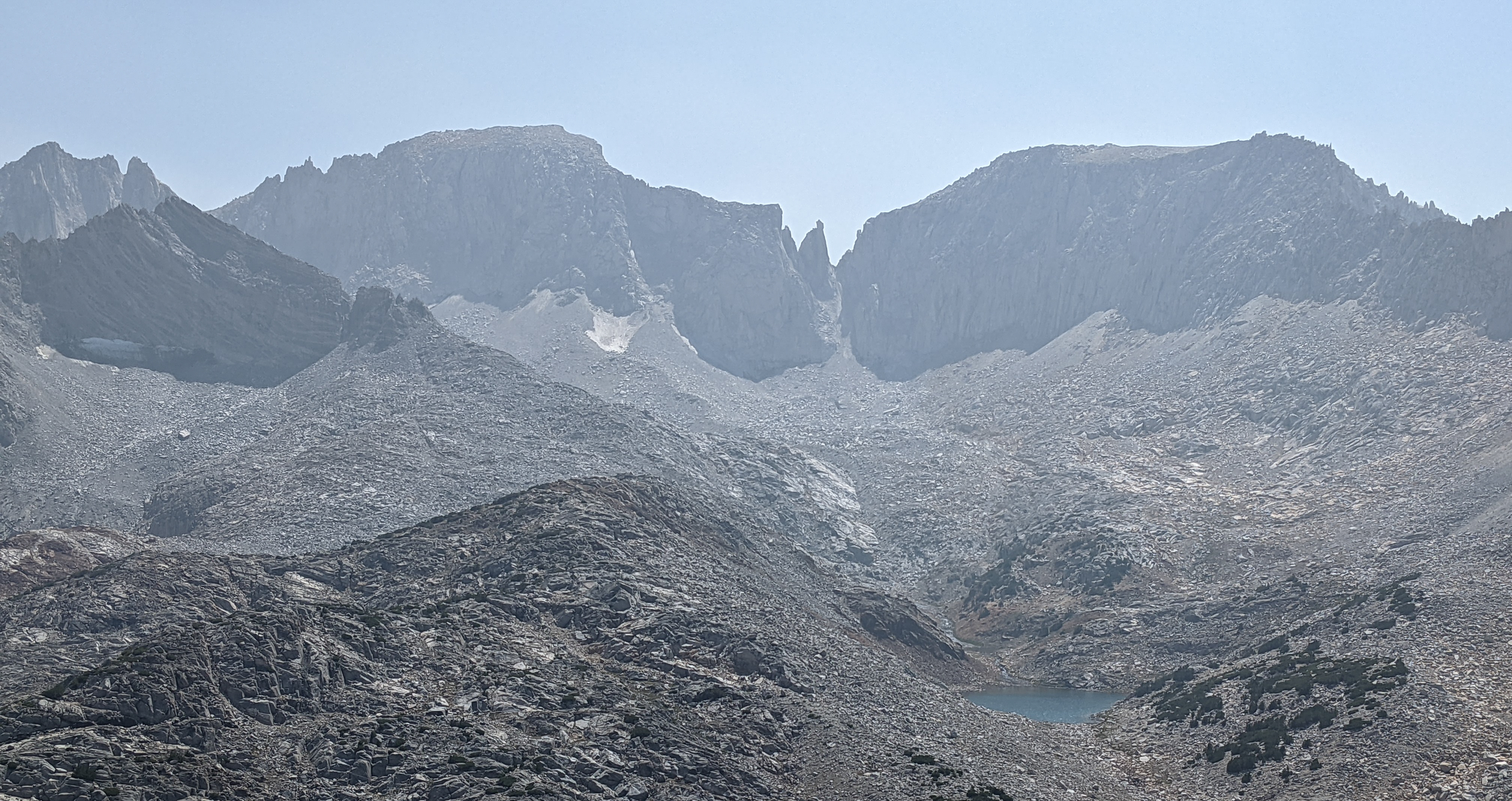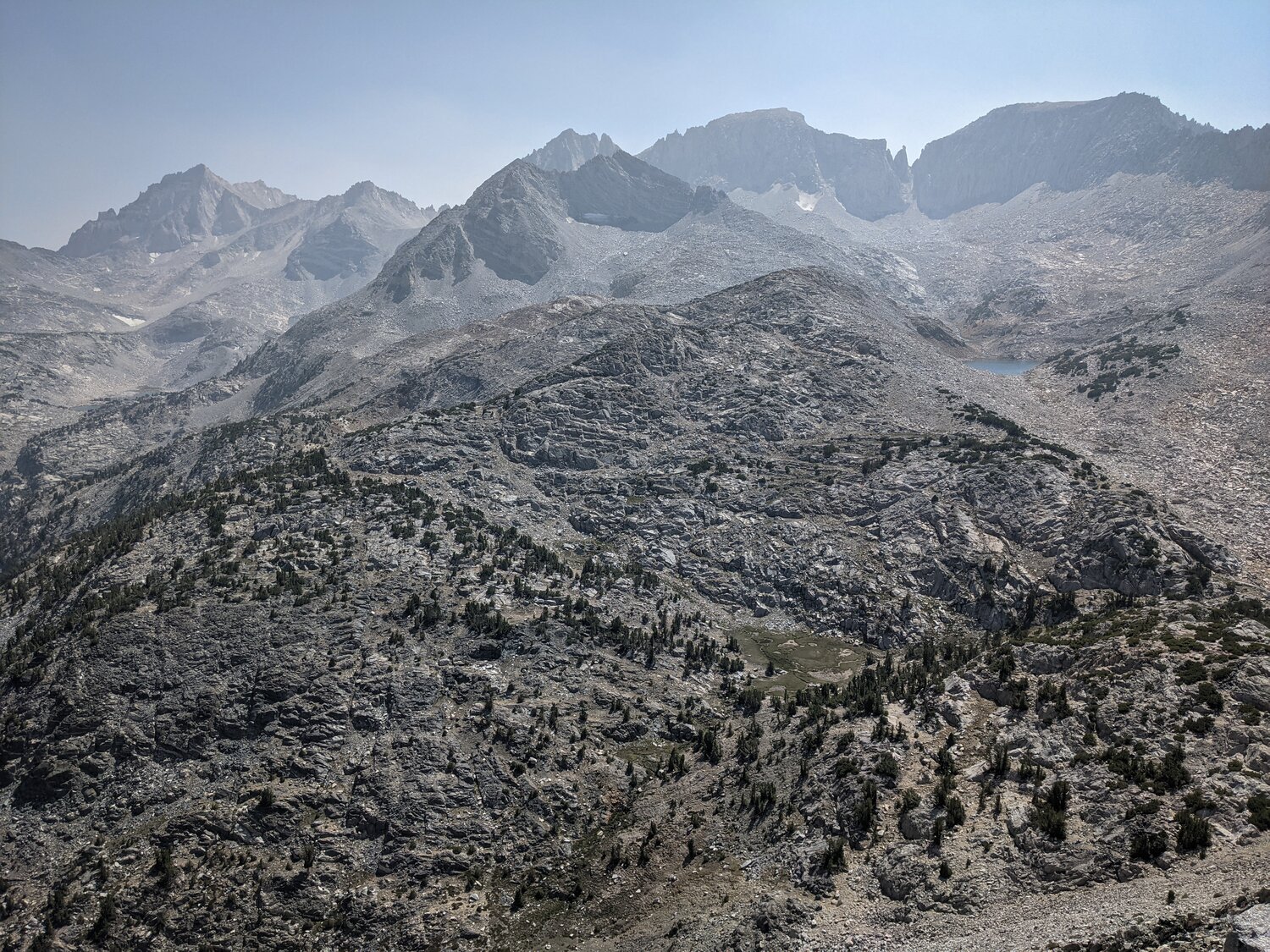 By the time afternoon rolled around, some wind had started to blow the smoke around a little bit and I figured I could find a spot to go get a bit of exercise. Having, unfortunately, gotten fairly good at reading tea-leaf combination of PurpleAir, CalTopo realtime satellite maps, and windy.com wind plots, I picked out the Little Lakes Valley as the best combination of not too smoky, not too far, and not too crowded (probably). After last week’s much-more-fun-than-expected outing up Mount Starr, I selected another lesser peak in the area that I figured I could climb in 3 or 4 hours: Lookout Peak, which rises just south of Ruby Lake off the Mono Pass Trail. So, off I went.