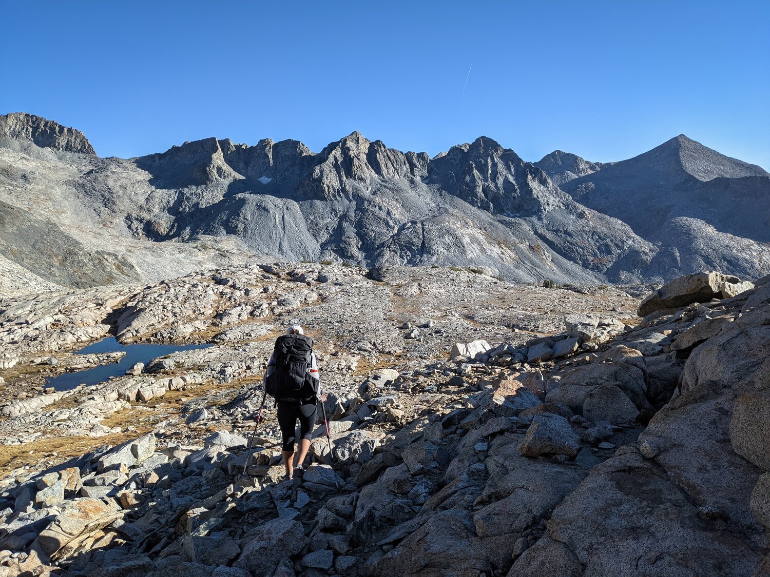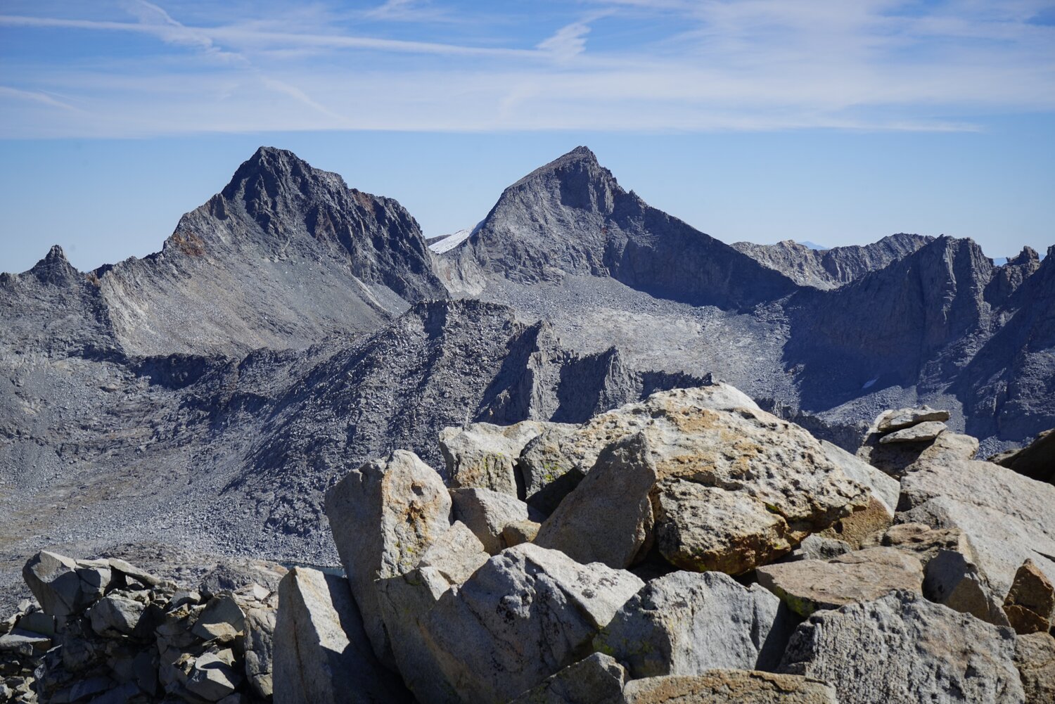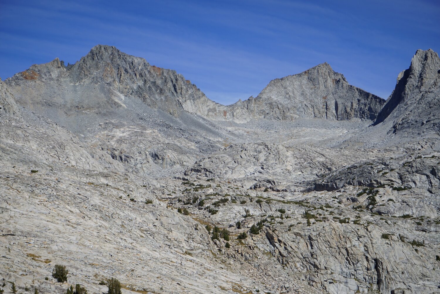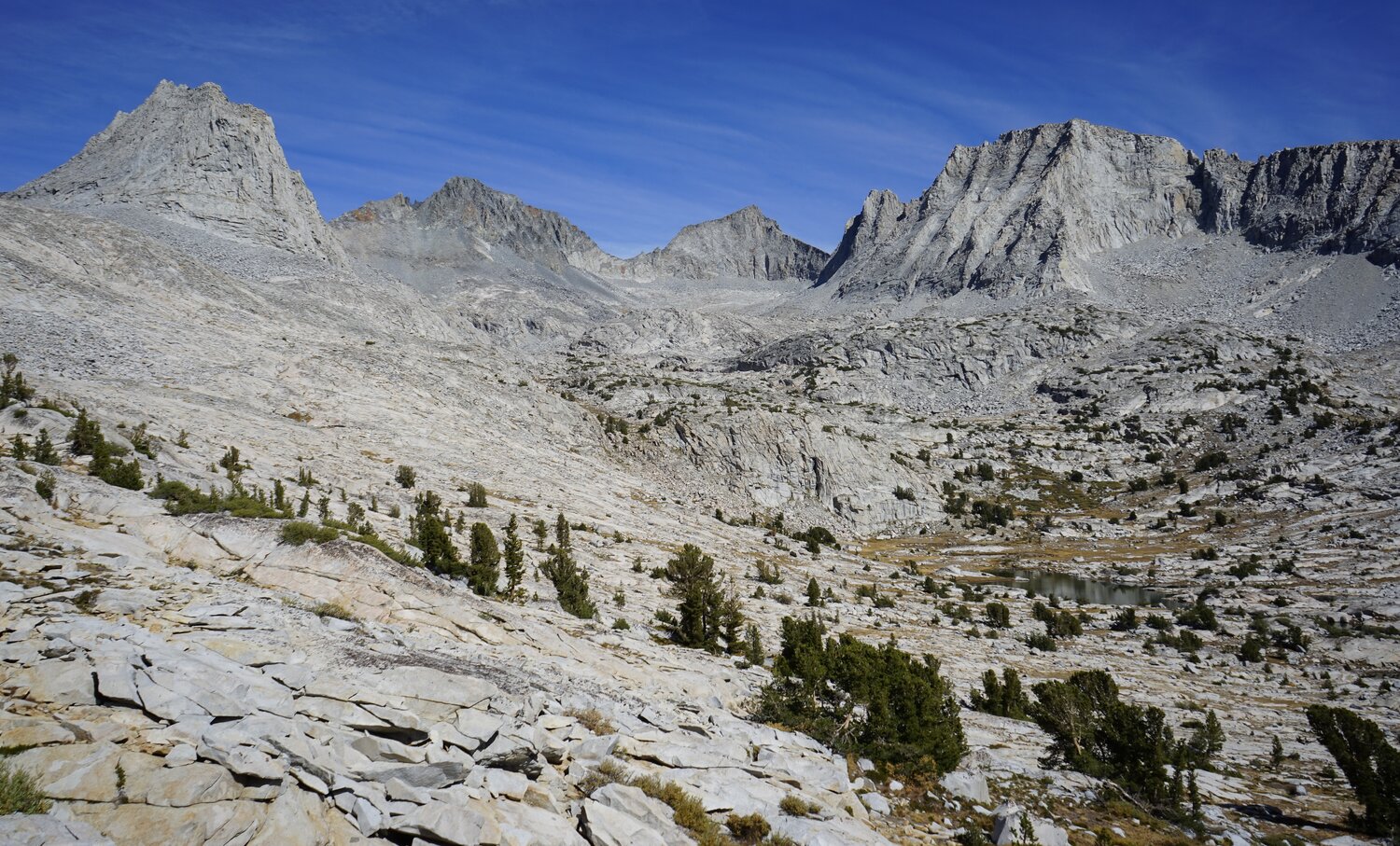 Looking south towards Foerster Peak and Mount Ansel Adams from Sluggo Pass.