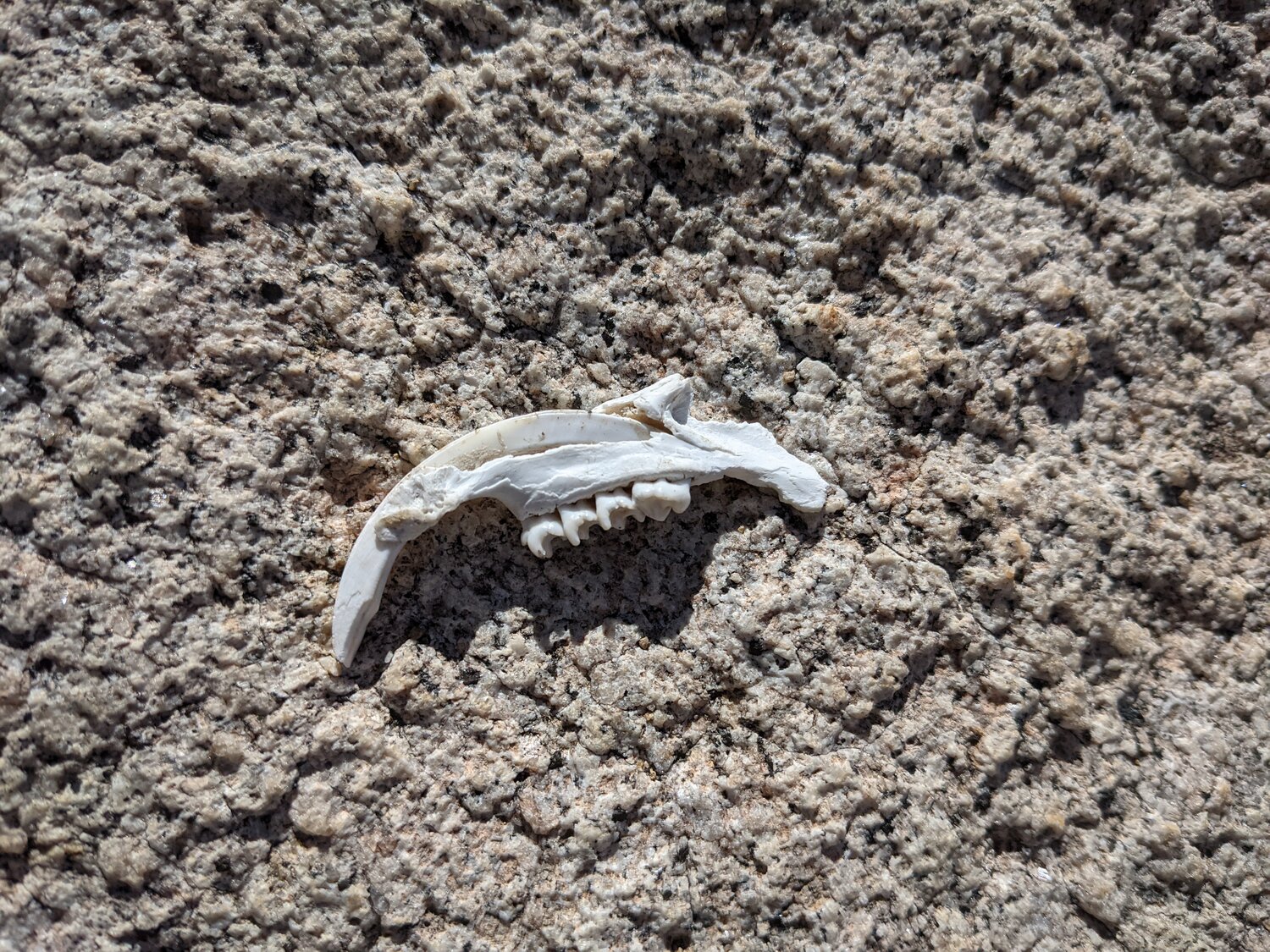 Some sort of jawbone we found on a rock, maybe a vole or some other kind of rodent?