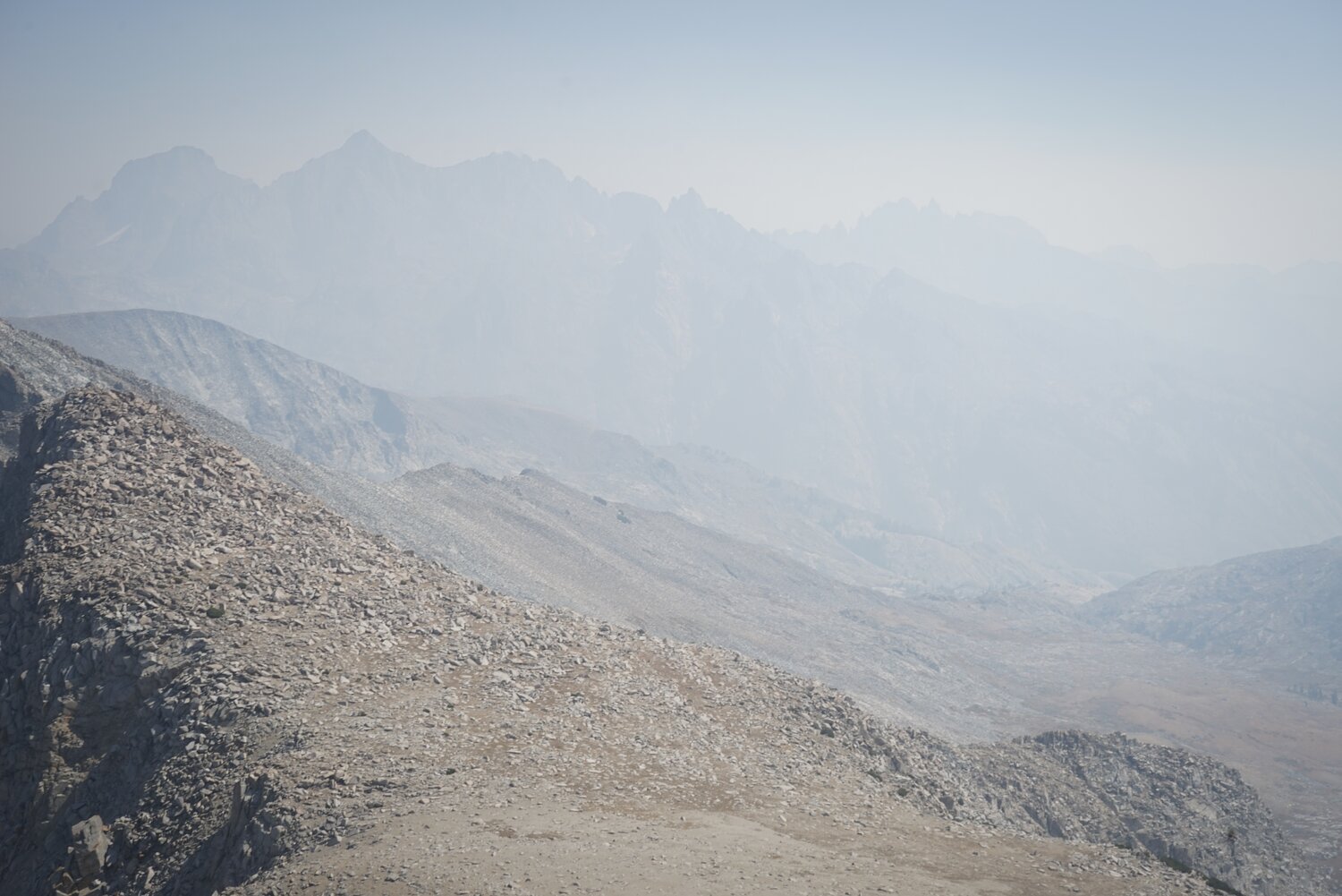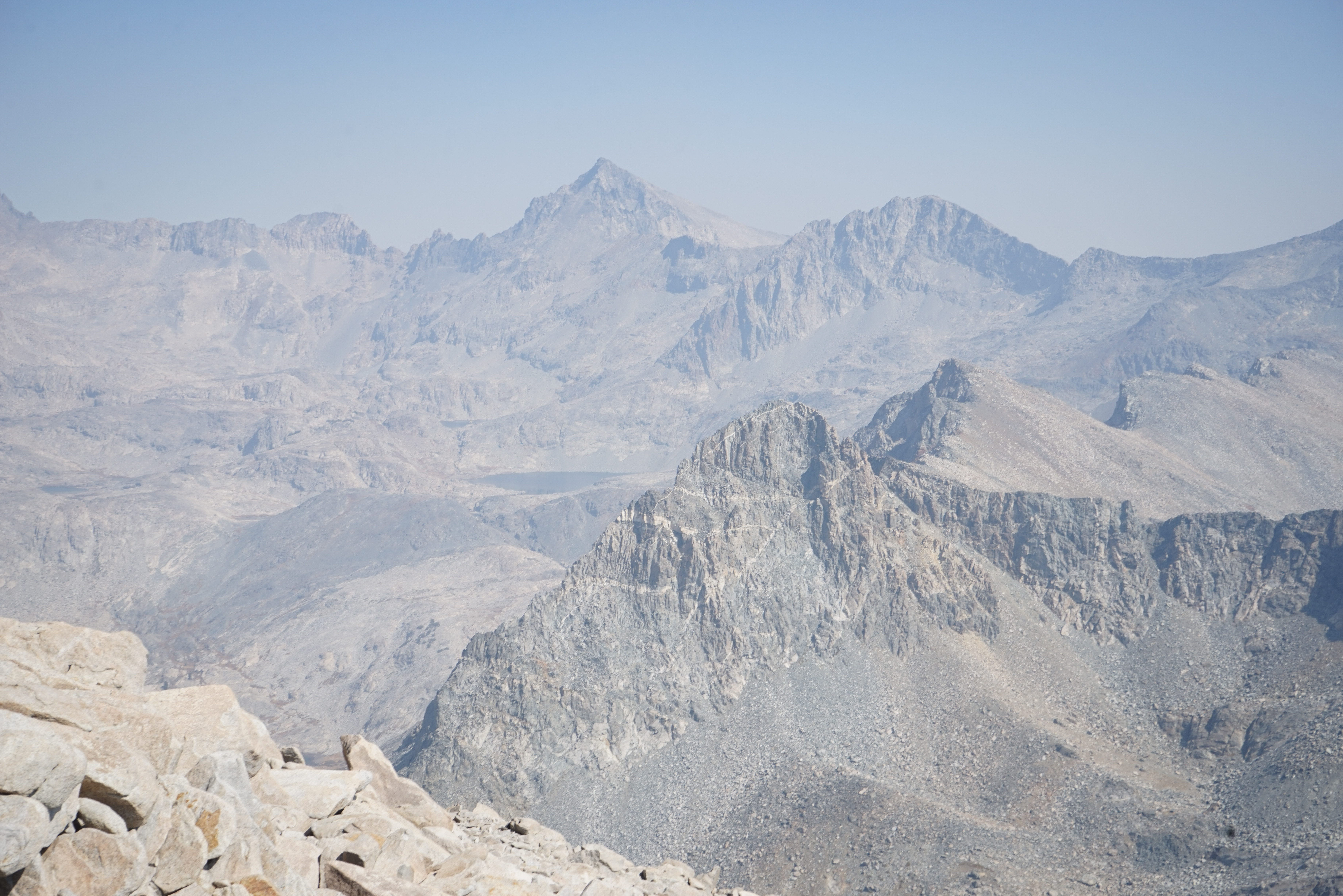 Mount Ansel Adams and Rodgers Peak from the slope of Foerster Peak. A bit of haze was moving in from the fires to the south, but it wasn’t terrible.