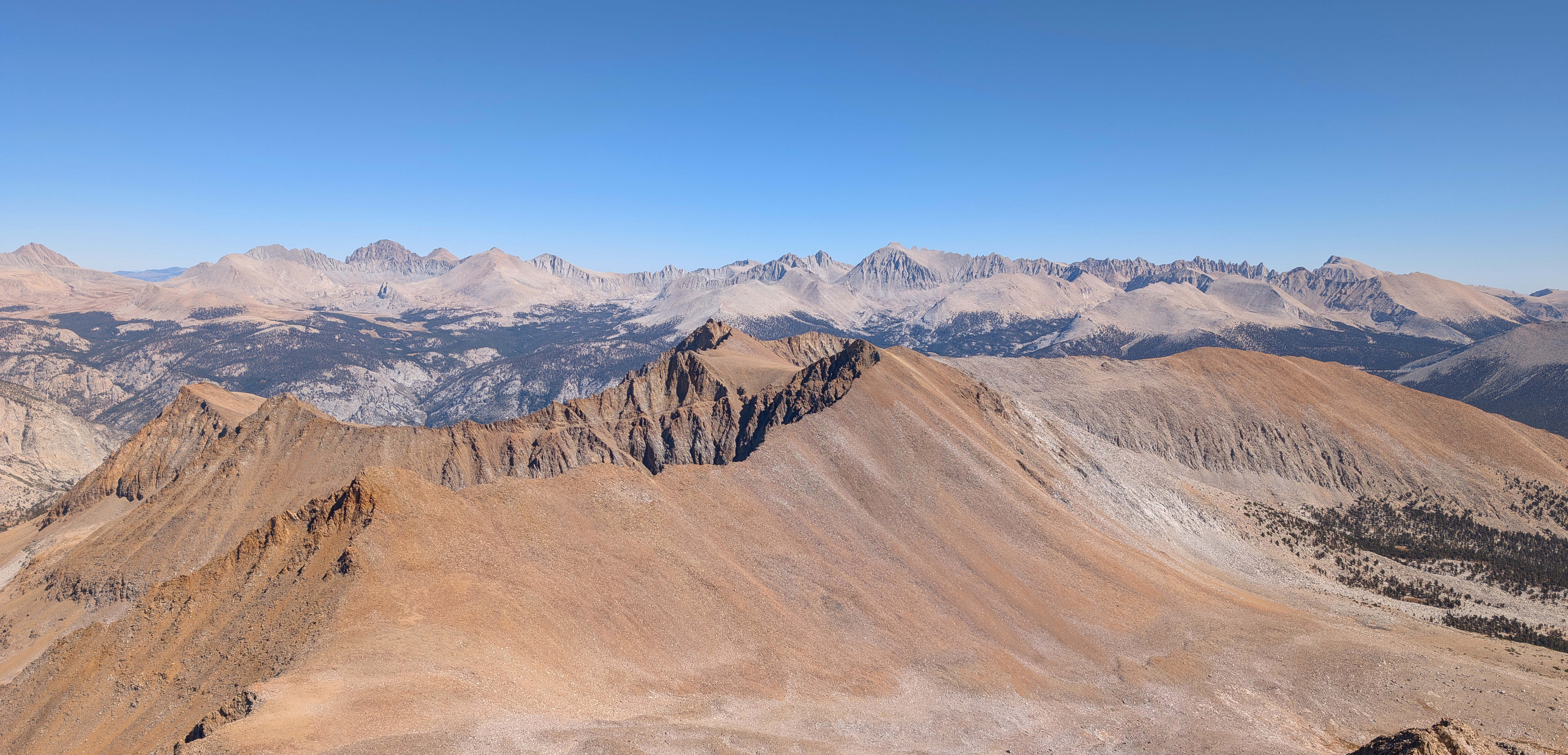 Mount Ritter and Banner Peak far to the north, with Mount Goddard at right.